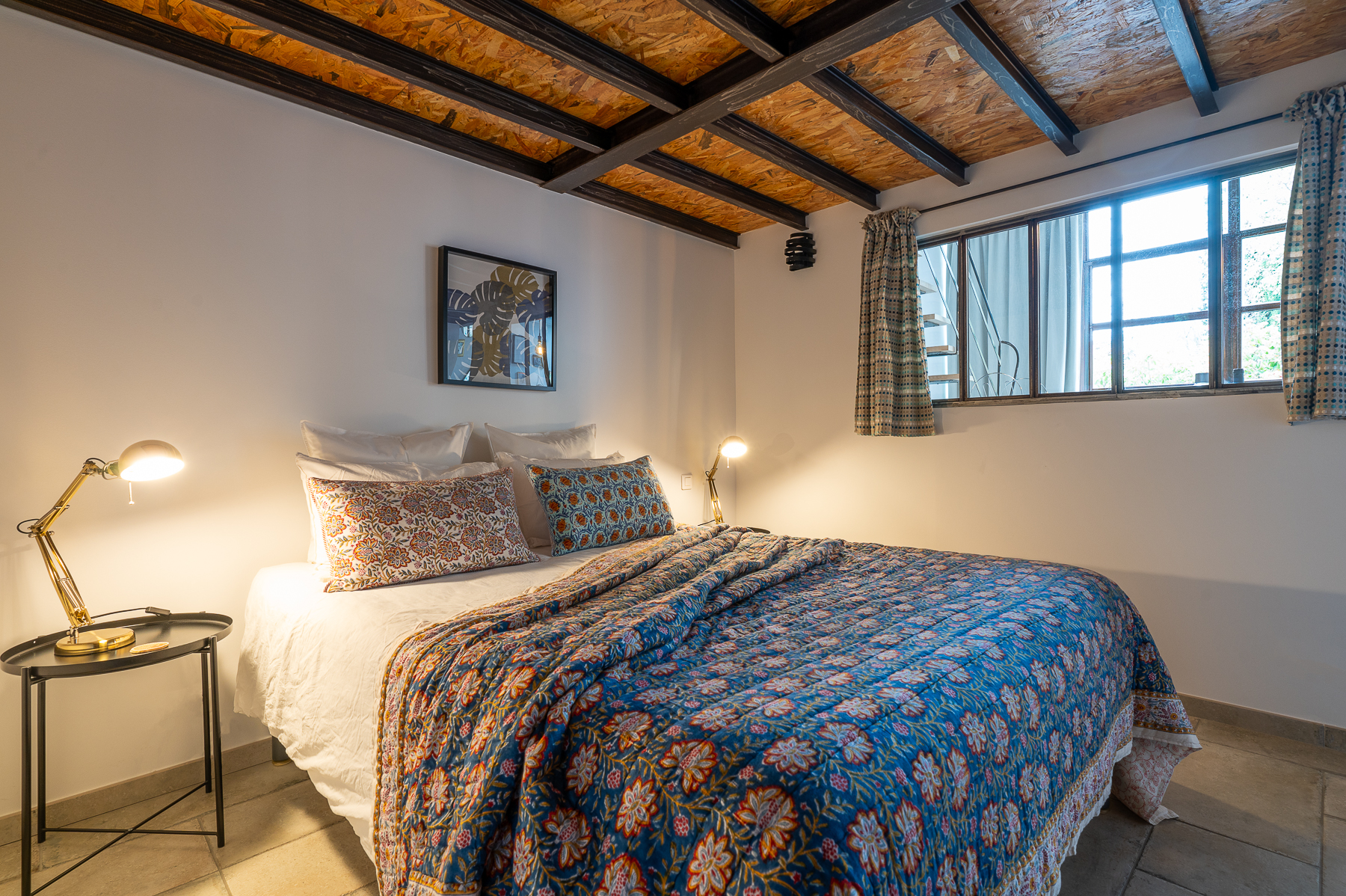 Diese Wohnung, ideal für 2 bis 3 Personen, hat einen industriellen Loft Stil dank ihrer bearbeiteten Eisenstrukturen und ihrer Mezzanine (Zwischenstock ?). Durch die großen Erkerfenster dringt viel natürliches Licht in die Wohnung ein, was zur warmen Stimmung der Wohnung beiträgt.